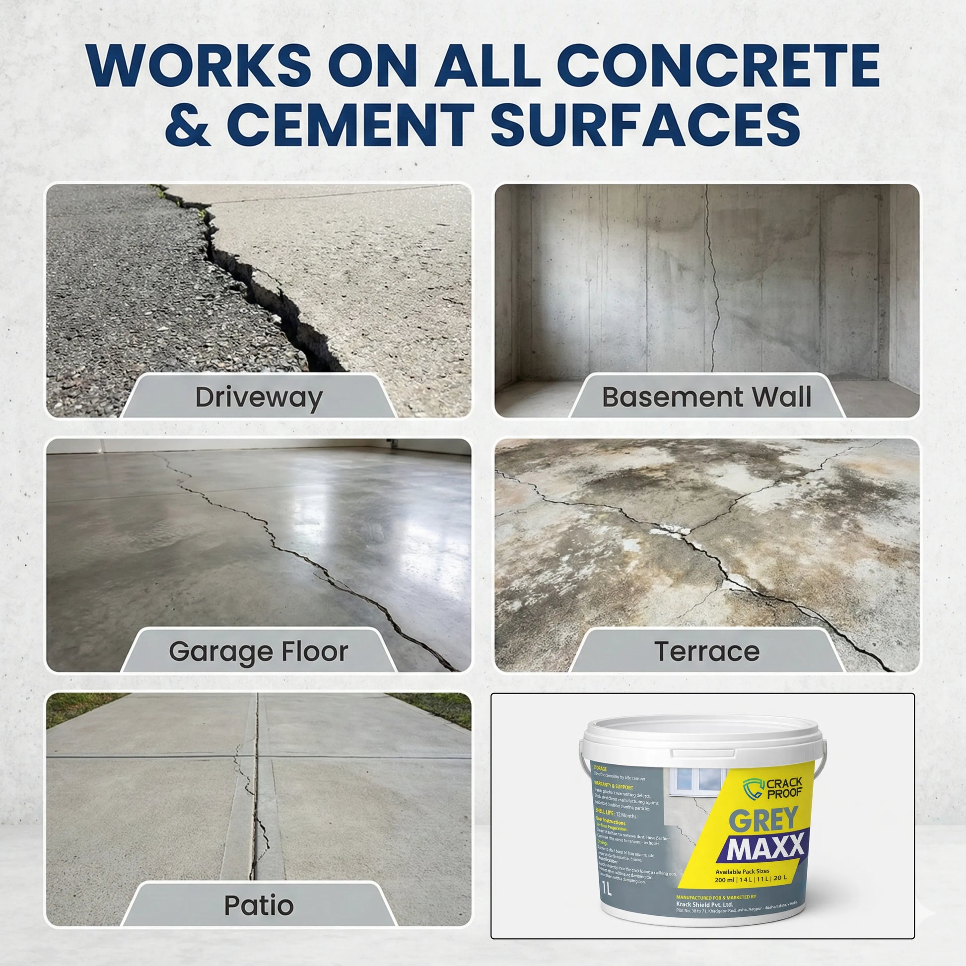 Multi-Surface Use: Perfect for concrete walls, floors, ceilings, driveways, pavements, and more.
